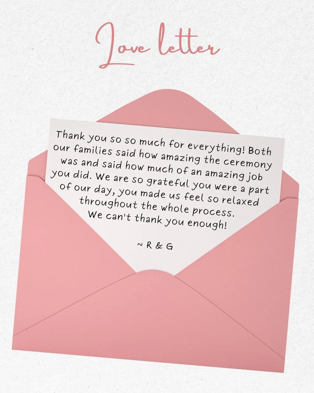 Danika made the whole process soo easy and she really took the time to get to know us so she could build the most perfect ceremony! We have had soo much feed back from our guests , “ soo refreshing to laugh soo much at a wedding “ “ best wedding ceremony I’ve ever been to “ ! After being a bundle of nerves the moment we met Danika at the end of that aisle she put us both at ease